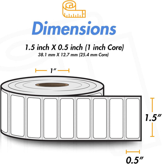 Etiquetas Térmicas 3.81 × 1.27 cm – 2350/Rollo, Adhesivo Permanente