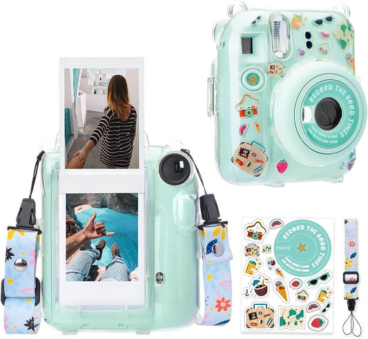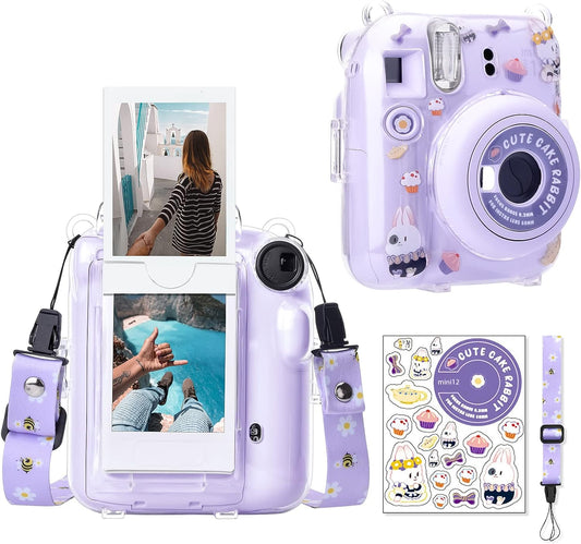 Protector Transparente Instax Mini 12 con Correa y Pegatina | Carcasa de Policarbonato D3