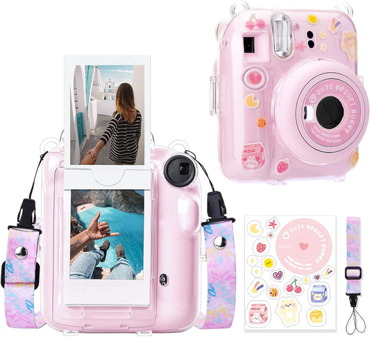 Protector Transparente Instax Mini 12 con Correa y Pegatina | Carcasa de Policarbonato D5