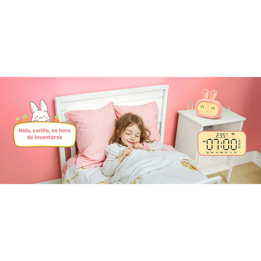 Reloj Despertador Infantil Conejito – Triple Alarma y Luz Nocturna Rosado